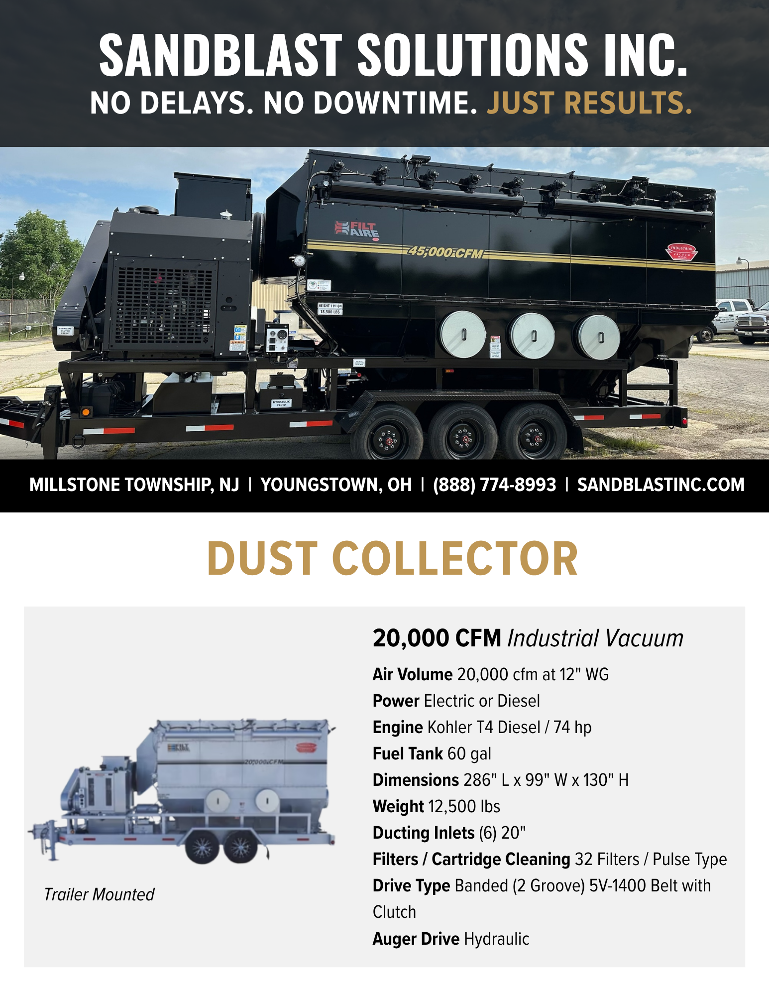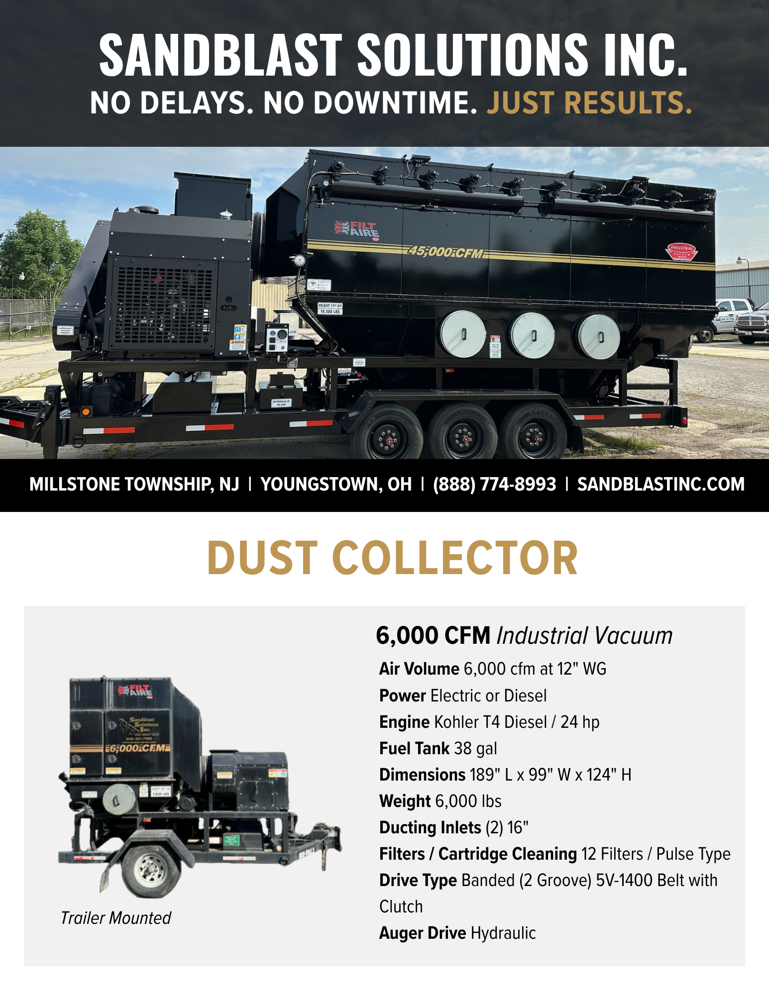 Ideal for medium sized jobs where a large dust collector won't fit. Can be used for indoor and outdoor applications. Available in Diesel or Electric.