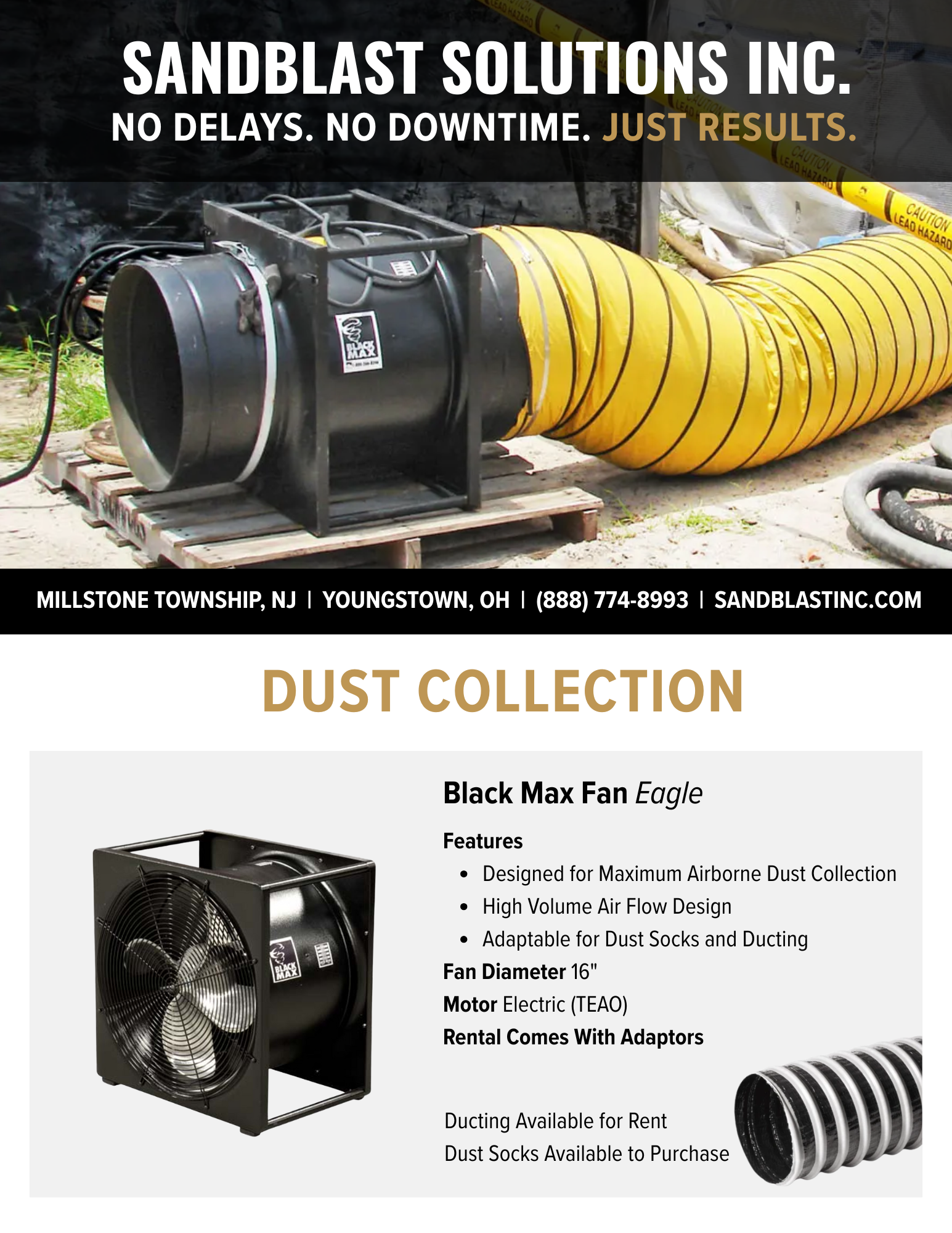 *Adapters Included with Rental. Ducting Available for Rent. Dust Socks Available to Purchase*